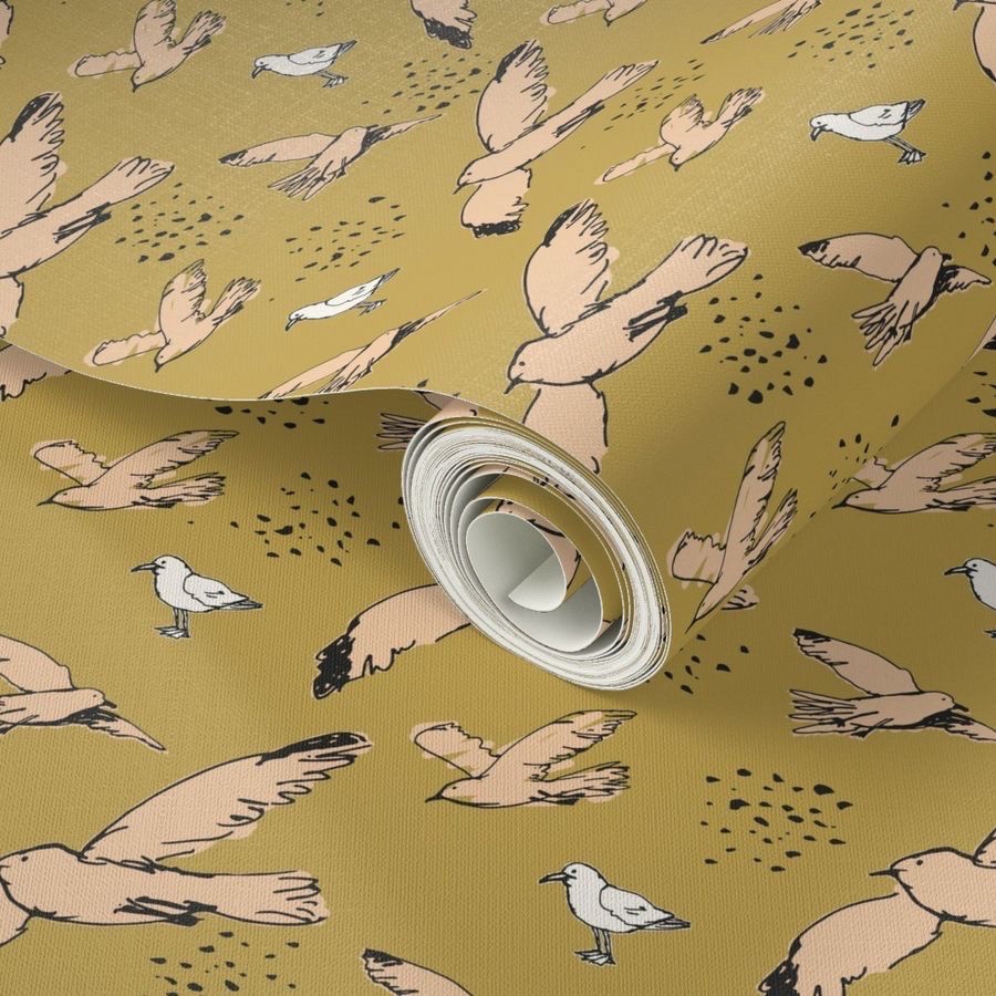 pink and mustard seaside seagulls - seaside birds