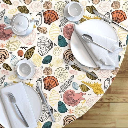 beach seaside Sea Shells in yellow, mustard, coral, pink