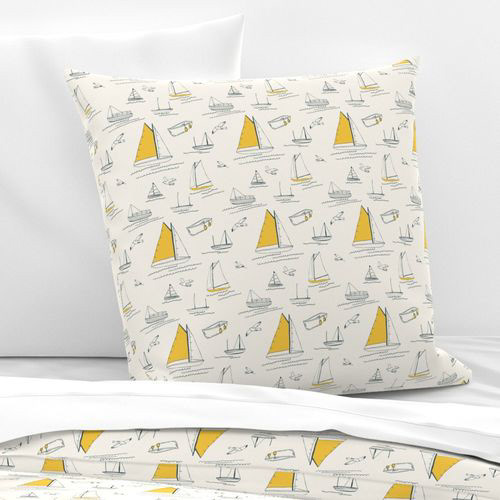 nautical seaside sailboats in cream, yellow and grey